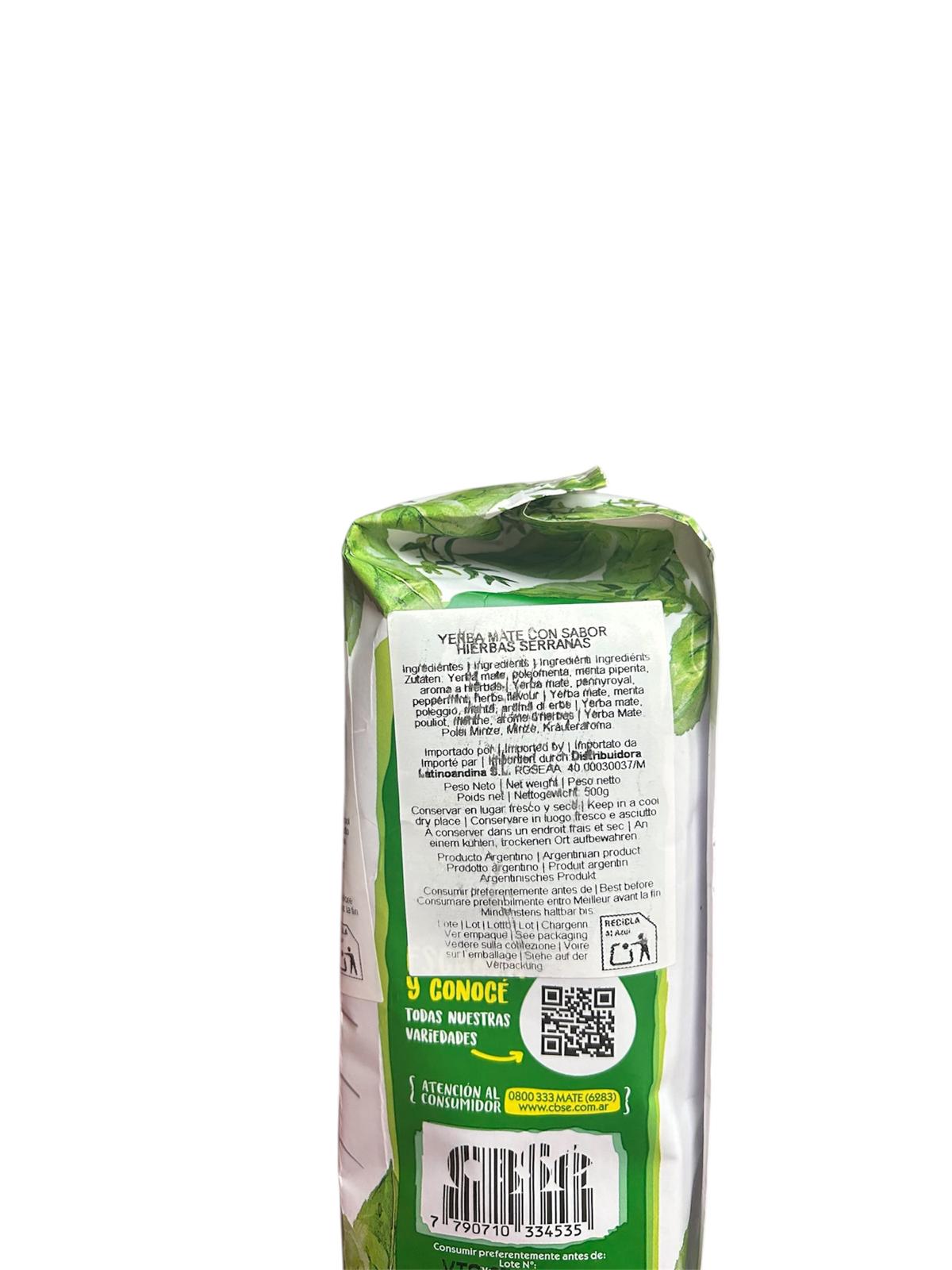 Yerba Mate CBSé con Hierbas 500 g, mezcla de hojas seleccionadas y hierbas naturales para un mate suave, aromático y revitalizante. Perfecta para infusiones y momentos de bienestar.