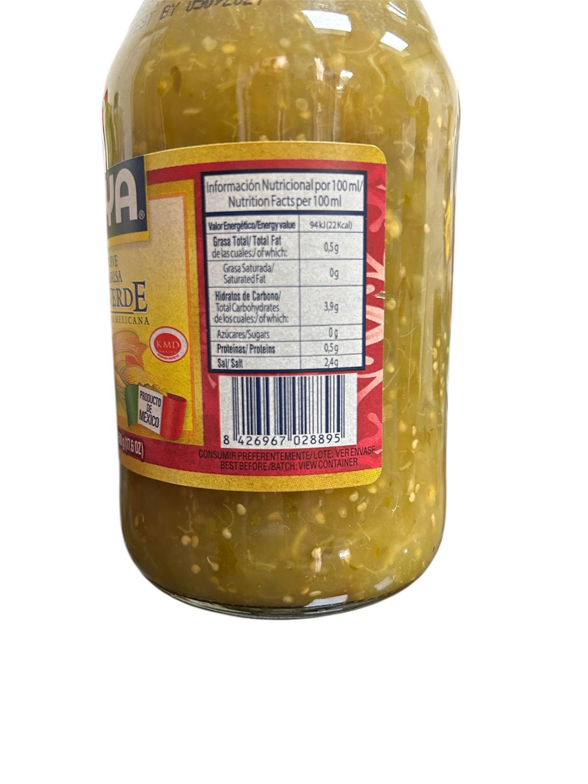Salsa Verde Goya Suave 500 g: auténtico sabor mexicano con tomatillos y chiles suaves. Ideal para tacos, enchiladas y carnes. ¡Salsa verde con el toque perfecto de picante!