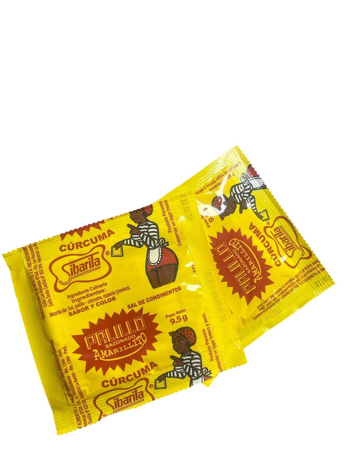 Sibarita unid. Palillo s/pic sobre 9g es un sazonador en polvo a base de cúrcuma (palillo), sal y especias, utilizado principalmente para aportar un color amarillo intenso y sabor a platos tradicionales. El formato individual de sobre suele contener 9, gramos (a menudo referido como 9g) y se caracteriza por ser una opción sin picante, ideal para guisos como el ají de gallina o el arroz con pollo.